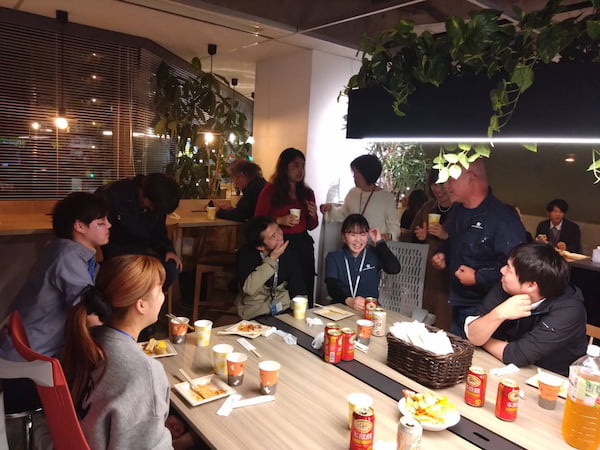 内定者の学校のOB・OGがいて、転職組の先輩社員もいて、皆でワイワイ、ガヤガヤと会社の雰囲気を
